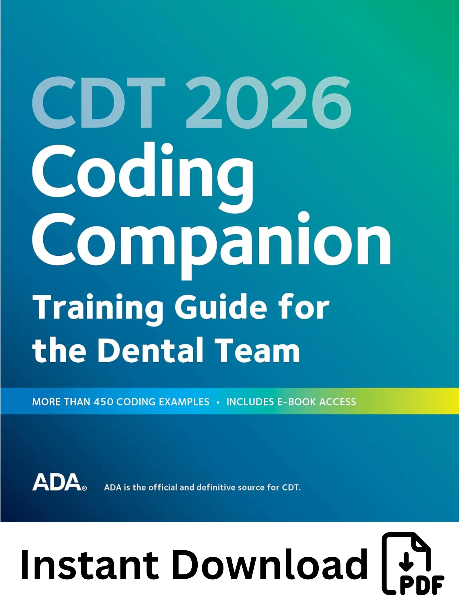 CDT 2026 Coding Companion: Training Guide for the Dental Team is a practical instructional guide designed to help dental teams accurately document procedures and submit correct claims. Vetted by the ADA, it explains how to apply CDT codes using step-by-step guidance, real-world coding scenarios, and examples of new and revised codes.