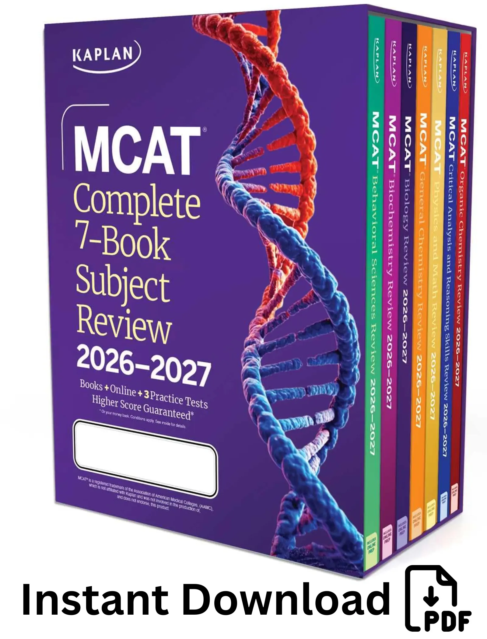 Kaplan’s Complete 7-Book Subject Review 2026–2027 provides a structured and in-depth overview of the core subjects tested on the MCAT. The set includes seven volumes covering biology, biochemistry, general chemistry, organic chemistry, physics, math, psychology, sociology, and critical analysis.